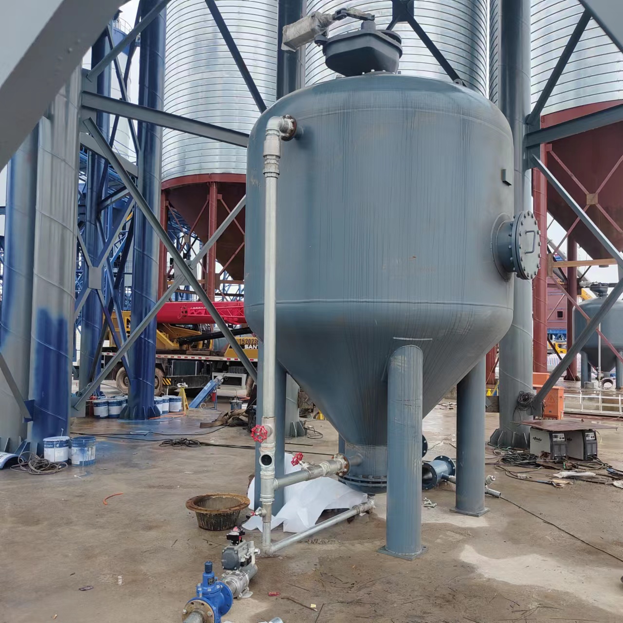 集中供料系統采用一臺機一根管,密封式回路設計方式,保證整個系統運行穩定,絕無回潮、堵料現象發生。